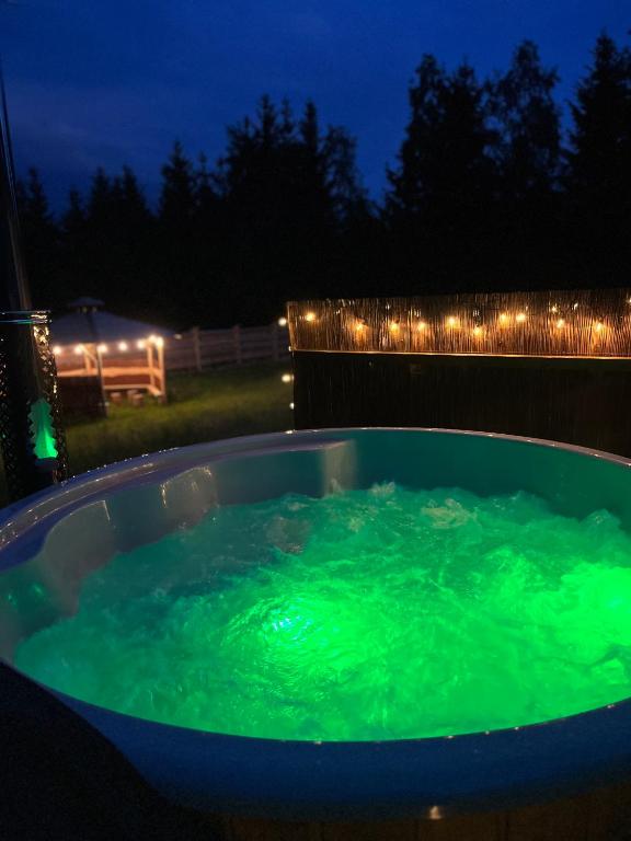 Ciepła balia w otoczeniu natury pozwala zregenerować siły i cieszyć się spokojem niezależnie od pory roku.