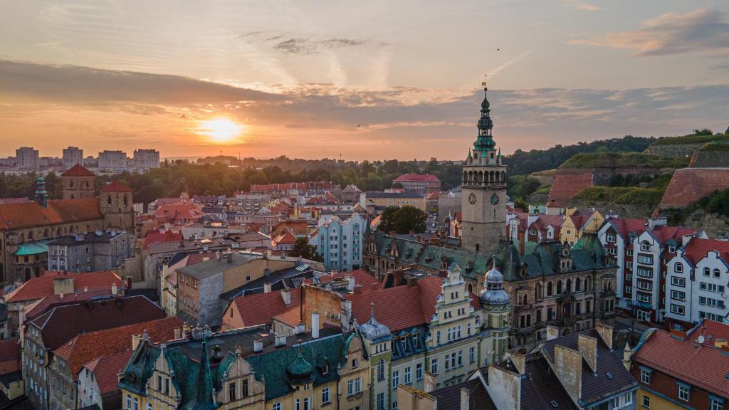 - Widok: Widok na las, widok na pola, widok na jezioro, widok na dalekie wyżynne krajobrazy